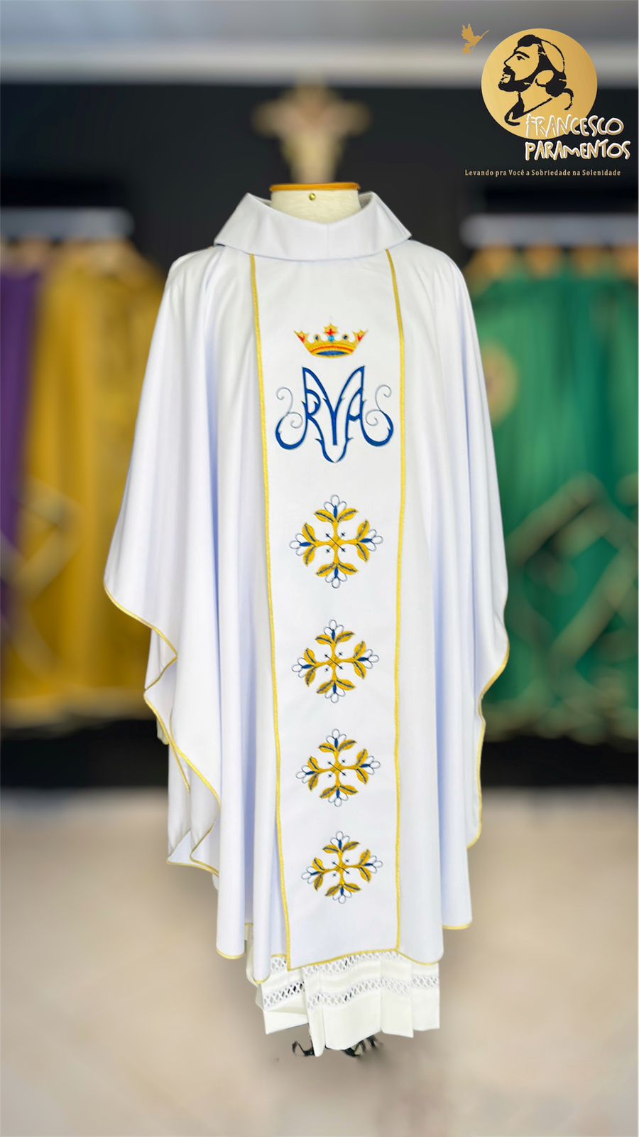 A Francesco Paramentaria confecciona suas peças litúrgicas com tecidos sofisticados e com acabamentos de alta qualidade, com artes criadas e desenvolvidas de forma única.