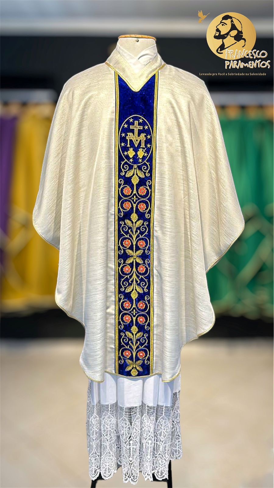 A casula é uma veste solene própria do padre e é usada pelo sacerdote nas missas sempre por cima da túnica branca.