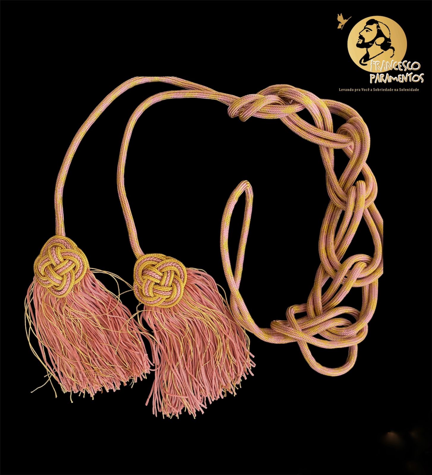 Cíngulo italiano cor litúrgica com dourado modelo São Lucas.