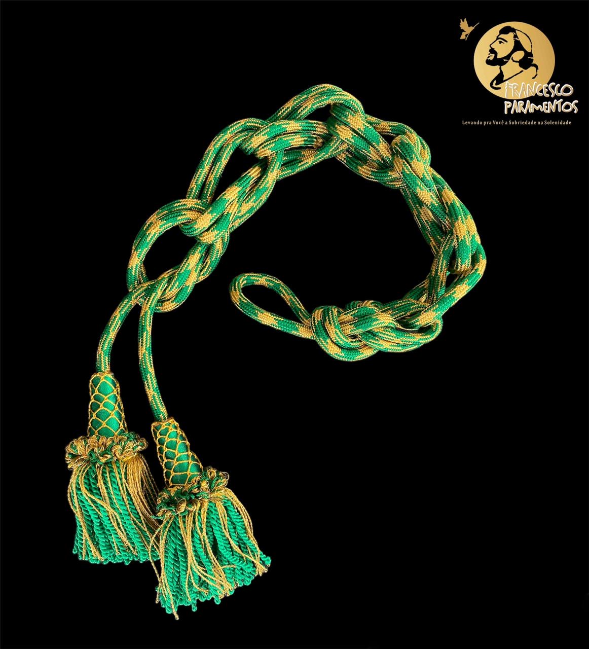 Cíngulo italiano cor litúrgica com dourado modelo São Marcos.