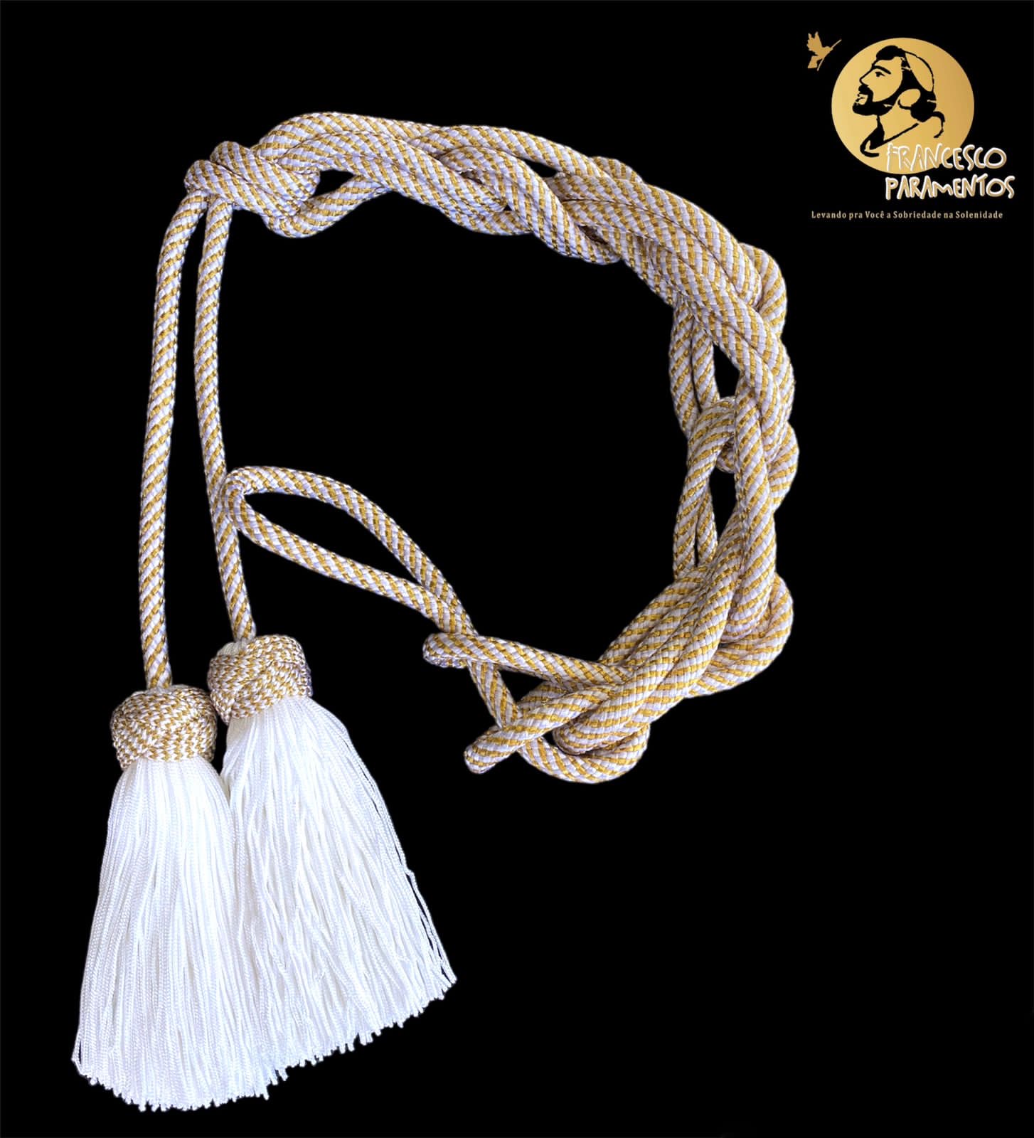 Cíngulo italiano cor litúrgica com dourado modelo São Mateus.
